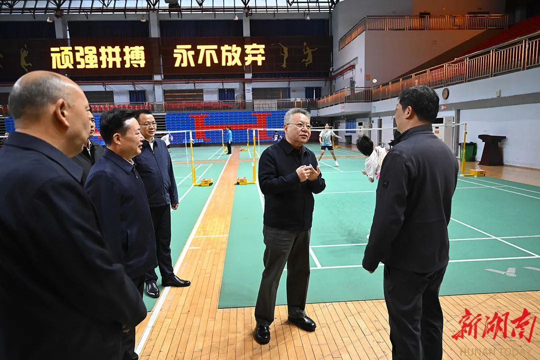 (11月18日,沈晓明在安化县羽毛球运动学校调研。)