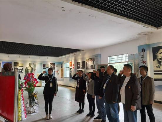 在张子清烈士纪念馆内,临时党支部全体党员庄严肃立,重温入党誓词。在讲解员的引导下,大家怀着无比崇敬的心情,了解张子清烈士舍命献盐和病榻受命守井冈山的英雄事迹,深切缅怀革命烈士。