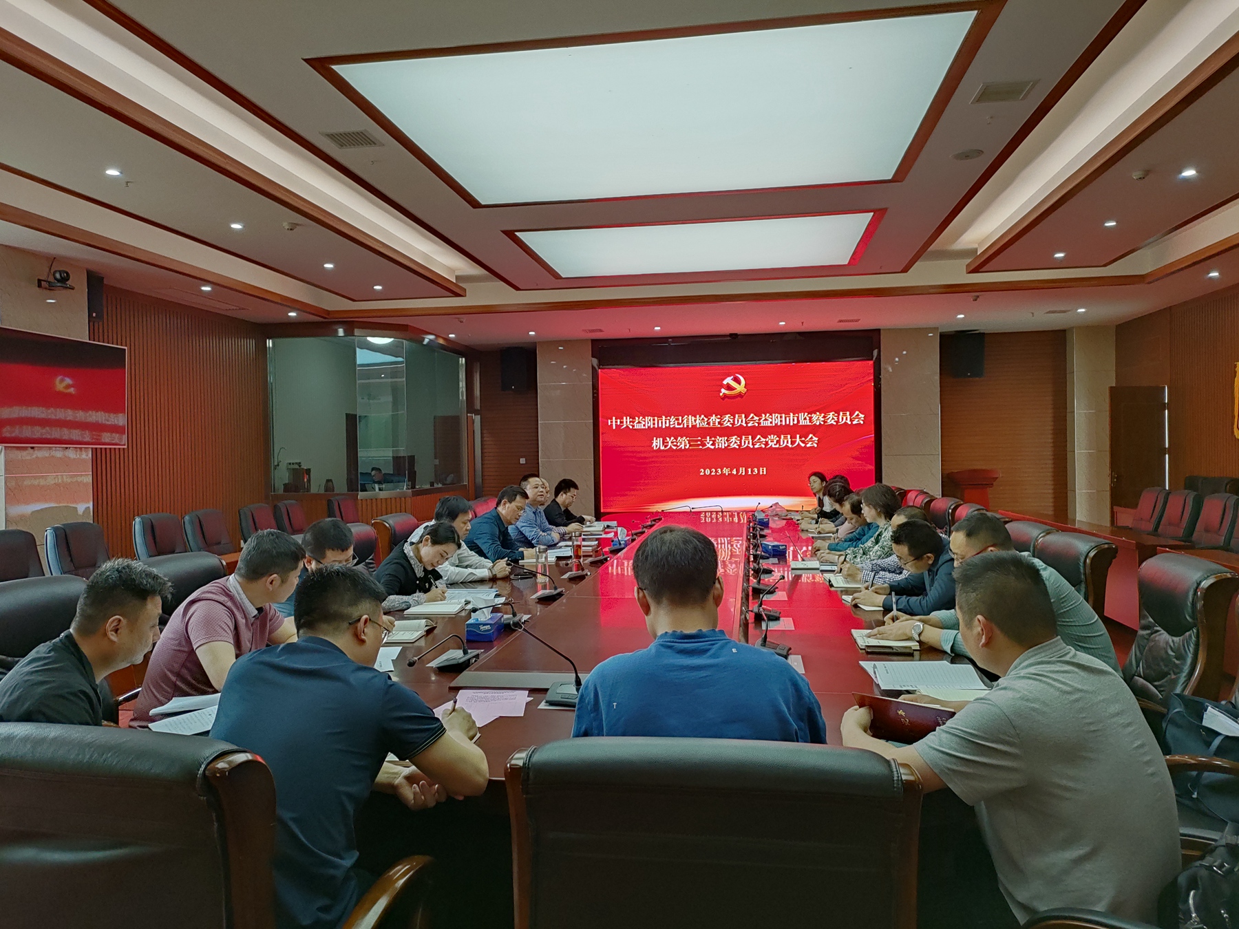 4月13日,市纪委监委机关第三党支部召开换届选举党员大会。