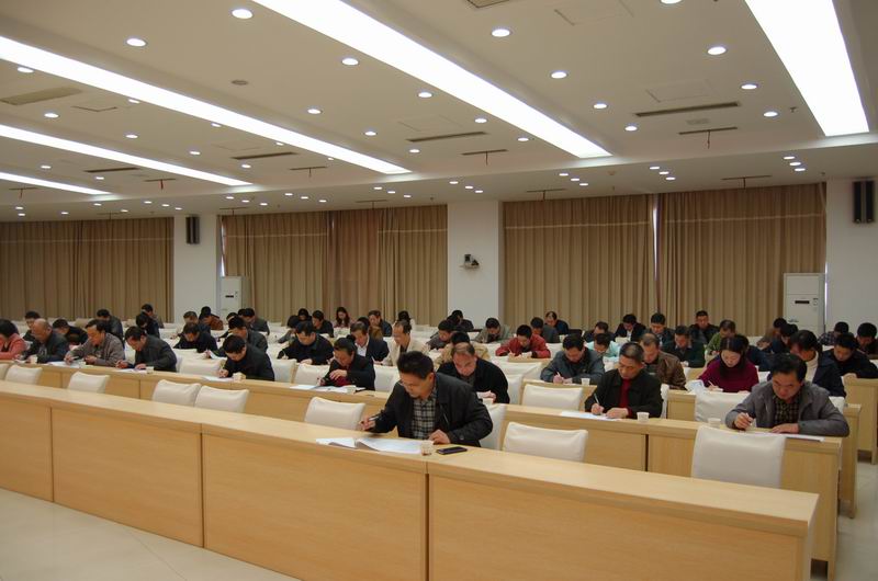 3月17日下午,一场特殊的考试在市政府电视电话会议室进行,市纪委监察局正举行党的群众路线教育实践活动理论测试,70多名纪检监察干部端坐考场,走笔疾书。