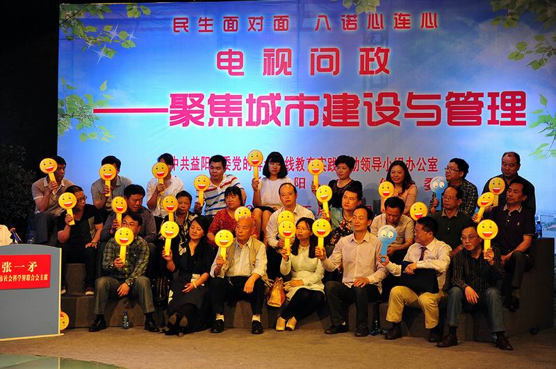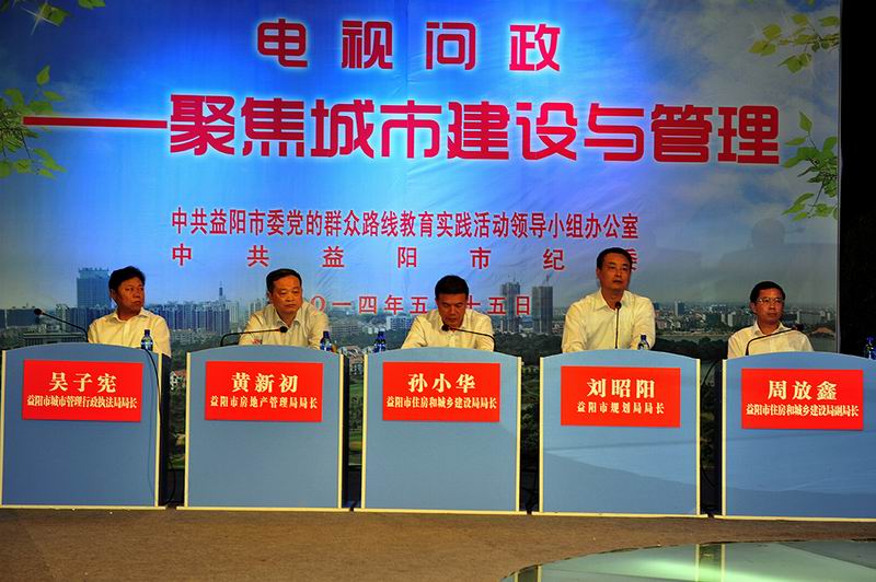 市住建、规划、房产、城管等单位负责人接受观众提问, 30位民评观察团现场测评,2位评论员现场点评……5月15日,市委党的群众路线教育实践活动领导小组办公室、市纪委举办,益阳电视台承办的“民生面对面 八诺心连心”电视问政《聚焦城市建设与管理》在益阳电视台演播厅举行。市委常委、市纪委书记黄进良,市委常委、副市长彭建忠,市委常委、宣传部长胡立安、益阳高新技术产业开发区工委副书记、管委会主任张运和出席。
