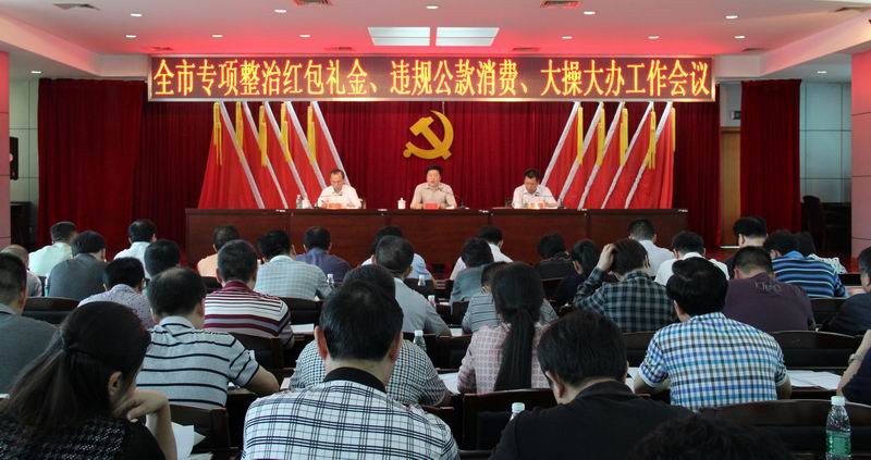 专题会议,节前示警。沅江市在5月30日召开了“全市专项整治红包礼金、违规公款消费、大操大办工作会议”,组织全体市级领导和各部门、单位一把手140余人参加。会上,沅江市委常委、纪委书记侯龙光聚焦“四风”问题,就全市当前党风廉政建设和作风建设工作作报告,并部署开展专项整治红包礼金、违规公款消费及大操大办工作,同时以这种方式在端午节前给全市各级领导干部再打招呼、提提醒。