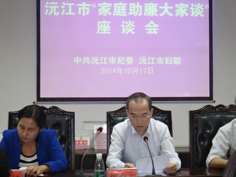 10月17日,沅江市纪委、沅江市妇联联合举办“家庭助廉大家谈”座谈会,沅江市委常委、纪委书记侯龙光出席座谈会并作讲话。座谈会由市纪委副书记刘名贵主持,市妇联主席龚菊红参加会议并作讲话。全市各乡镇场党委书记的配偶及部分政府组成局“一把手”的家属参加座谈会。