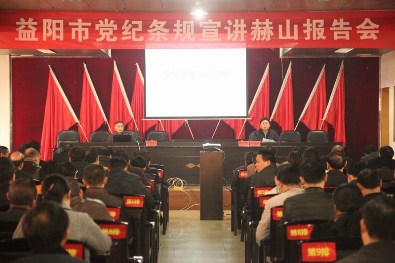 为强化全区干部廉洁自律意识,增强拒腐防变能力,12月4日上午,赫山在碧云宾馆一会议室举行党纪条规宣讲报告会,会议由区委书记贺辉主持,区“四大家”领导班子成员,区直及中央、省、市驻区单位,各乡镇(街道)、龙岭工业园党政一把手、纪(工)委书记(纪检组长)和区纪委监察局全体机关干职工共200余人参加了会议。