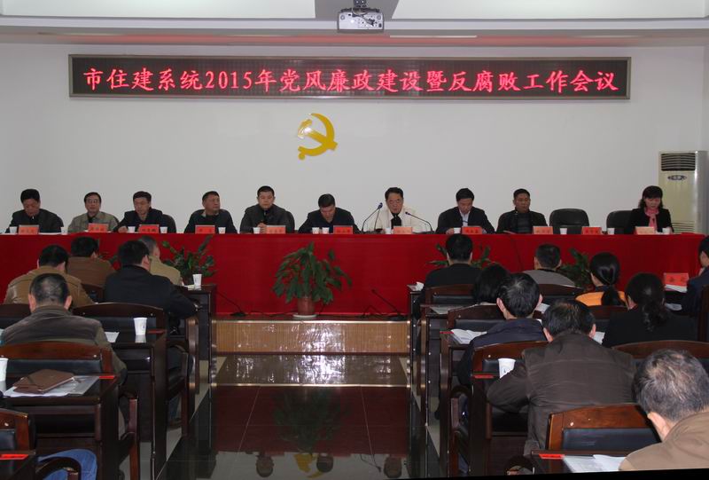 3月20日,市住建局召开2015年党风廉政建设暨反腐败工作会议,总结了2014年住建系统党风廉政建设和反腐败工作取得的成绩,对2015年工作进行了全面部署。市纪委常委唐治国到会指导。