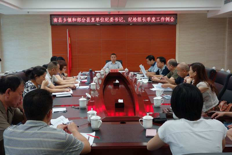 7月8日,南县第二季度纪检监察工作例会在会议中心406室召开,该县纪委监察局班子成员、12个乡镇纪委书记和部分县直单位纪检组长(纪委书记、纪工委书记)以及县纪委监察局有关室主任参加了会议。县委常委、县纪委书记陈国圭出席会议。