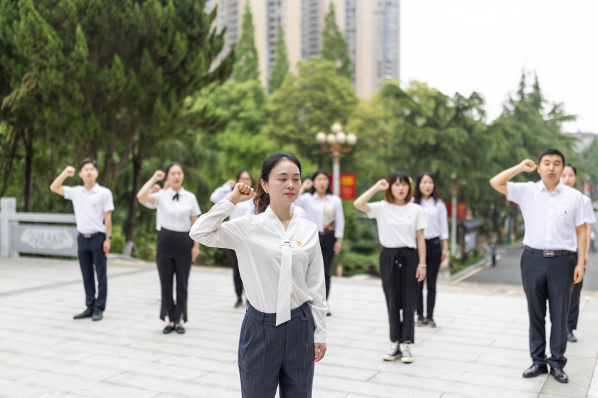 在段德昌烈士纪念碑前,青年干部深切缅怀烈士的丰功伟绩。“1931年夏天,长江中下游发生特大洪水。红九师师长段德昌带领红军化装成老百姓,夺得敌军军粮,把粮食分给灾民,而他的家里一粒米也没有。”县纪委监委支部书记张婷声情并茂地讲述着,“一粥一饭,当思来源,切莫骄奢,俭朴长绵。待人接物,廉洁奉公,修性养德,自重洁身。”听完段德昌的家风故事,大家的眼神更加坚毅,面向党旗高举右拳,“我志愿加入中国共产党……”重温入党誓词时,言语铿锵有力。