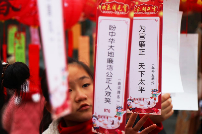 “我觉得猜灯谜活动挺好玩,也很有教育意义,随时提醒我们要守规矩、知敬畏,规范自己的行为。”市民葛先生表示。