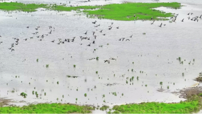 候鸟群相互嬉戏追逐(图/县融媒体中心王征洋)