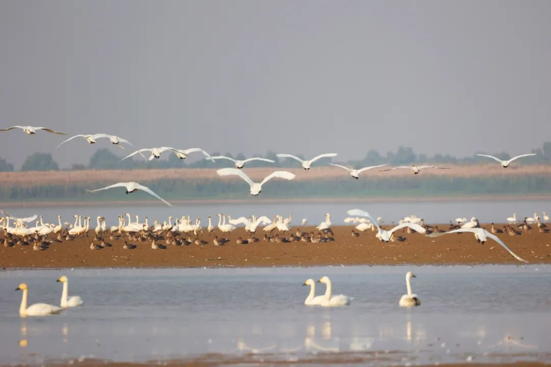 寒冬时节,在沅江市南洞庭车便湖、明朗山等水域,遥遥望去碧波粼粼、水草丰茂,成群的候鸟在此地栖息越冬,时而停下悠然觅食,时而轻盈跃上天空翩翩起舞,呈现出一派生机勃勃的生态画卷。
