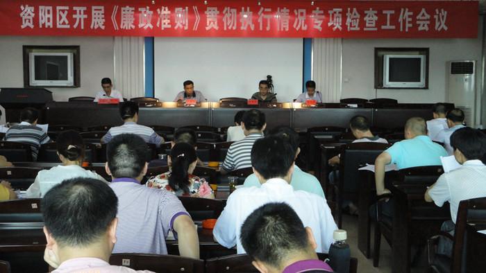 8月15日,资阳区召开全区《廉政准则》贯彻执行情况专项检查工作会。会议传达了市委书记马勇在约谈市纪委监察局班子成员和区县(市)纪委书记时的重要讲话精神;下发了《关于开展<廉政准则>贯彻执行情况专项检查工作的实施细则》,并就专项检查工作和当前各项重点工作进行了进一步安排部署。