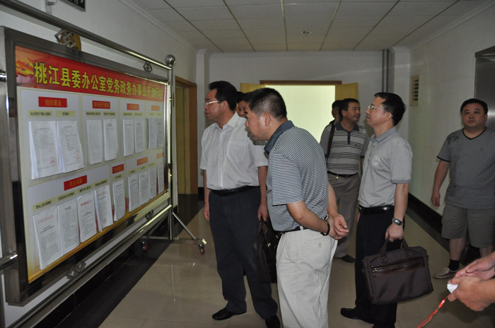 8月16日,市委常委、市纪委书记程纪龙率督查组到桃江县督查党务公开工作。督查组一行听取了情况汇报,并实地检查了桃花江镇崆峒村、石高桥村的党务公开工作。