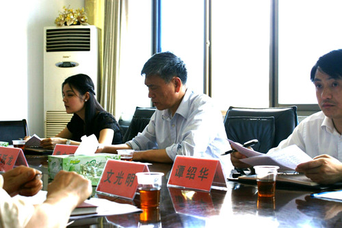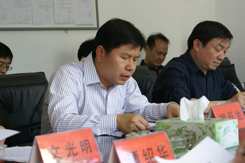 图为省委巡视组第一组组长黄文强一行听取汇报