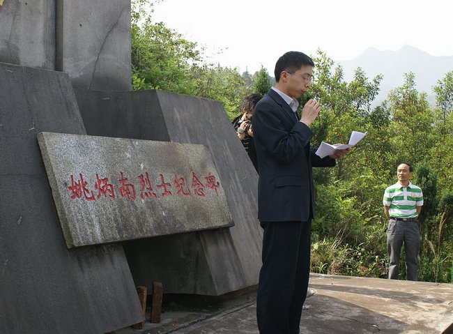 县委常委、县纪委书记胡跃龙、县纪委副书记文光明代表委局全体干职工向姚炳南烈士敬献花圈