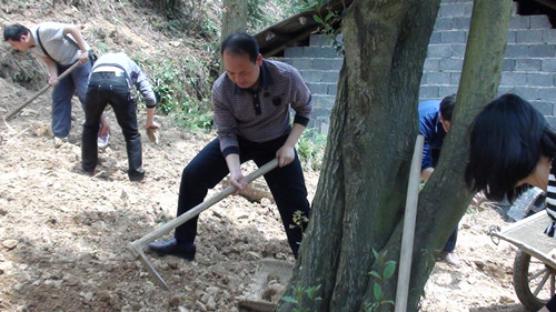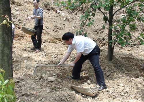 在胡跃龙书记的一声号令下,参加活动的机关干职工们纷纷拿起铁锨、锄头、畚箕和小推车,清运荒土中的大石头。大家挖的挖、挑的挑、推的推……力气的小的女同胞们也不甘示弱,用手将石头往小推车里搬,大家忙得热火朝天。整个劳动过程中,有的同志划伤了手,有的脏了衣服鞋子,但是看着荒坡上的大石头逐渐被清理干净,大家都忘记了劳累和辛苦。他们说:“开荒种树不仅能让我们的乡村变得更美,也是一种很好的劳动锻炼方式。特别是想到过不了多久,小荒坡也能绿树成荫,心情更是无比的高兴。”