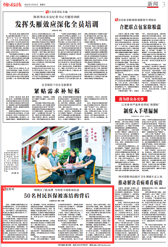 近日,在湖南省益阳市赫山区泉交河镇宫保第村,50名村民的医保参合终于被解冻。“多亏了纪委的介入,要不然我们一直都被蒙在鼓里,看病没法报销也只能吃哑巴亏了。”村民感慨地说。