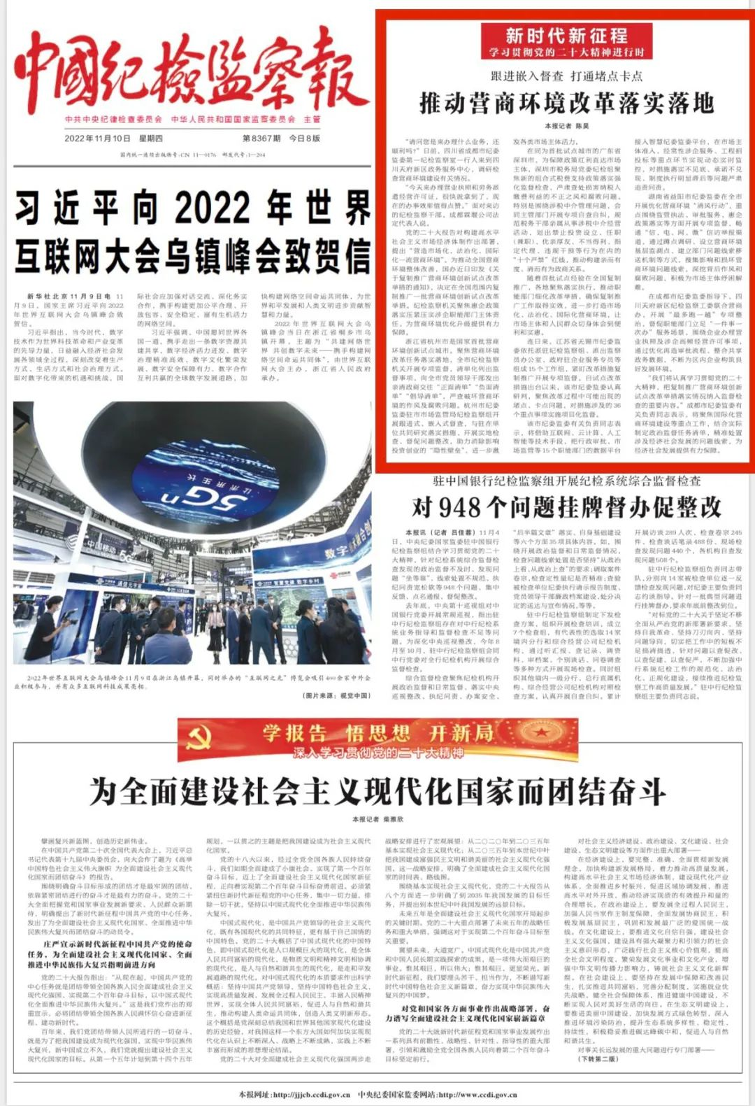“我们将认真学习贯彻党的二十大精神,把复制推广营商环境创新试点改革举措落实情况纳入监督检查的重要内容。”成都市纪委监委有关负责同志表示,将聚焦国际化营商环境建设等重点工作,结合实际制定政治监督任务清单,精准处置涉及经济社会发展的问题线索,为经济社会发展提供有力保障。