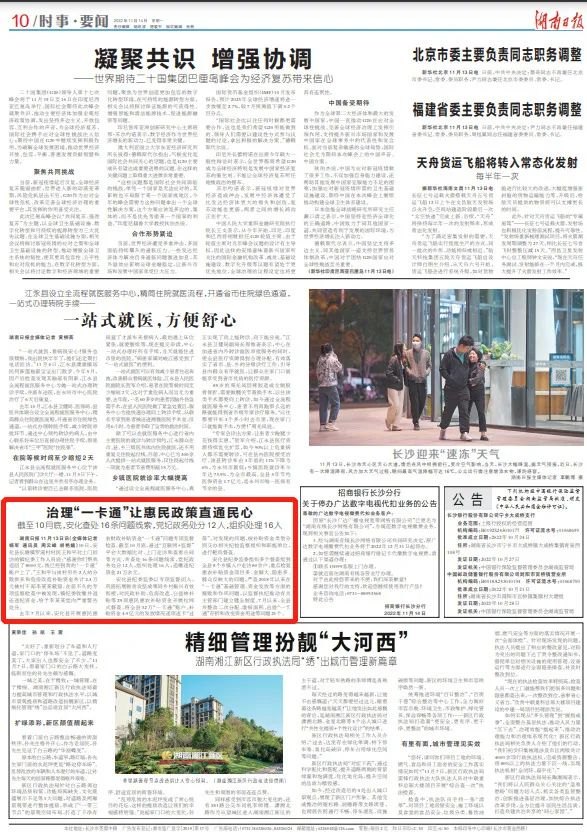 去年7月以来,安化县开展惠民惠农财政补贴资金“一卡通”问题专项监督检查。截至10月底,通过“互联网+监督”平台大数据比对、上门走访和查看合同等方式,共查处16条问题线索,党纪政务处分12人,组织处理16人,追缴违纪资金21万余元。