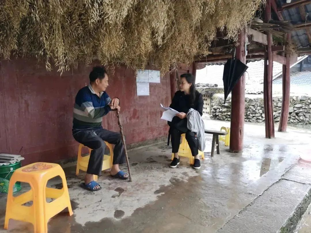 图为贵州省遵义市纪委监委驻竹元村第一书记谢佳清(右)在村民刘荣国家中走访了解情况,帮助解决困难。夏应礼 摄