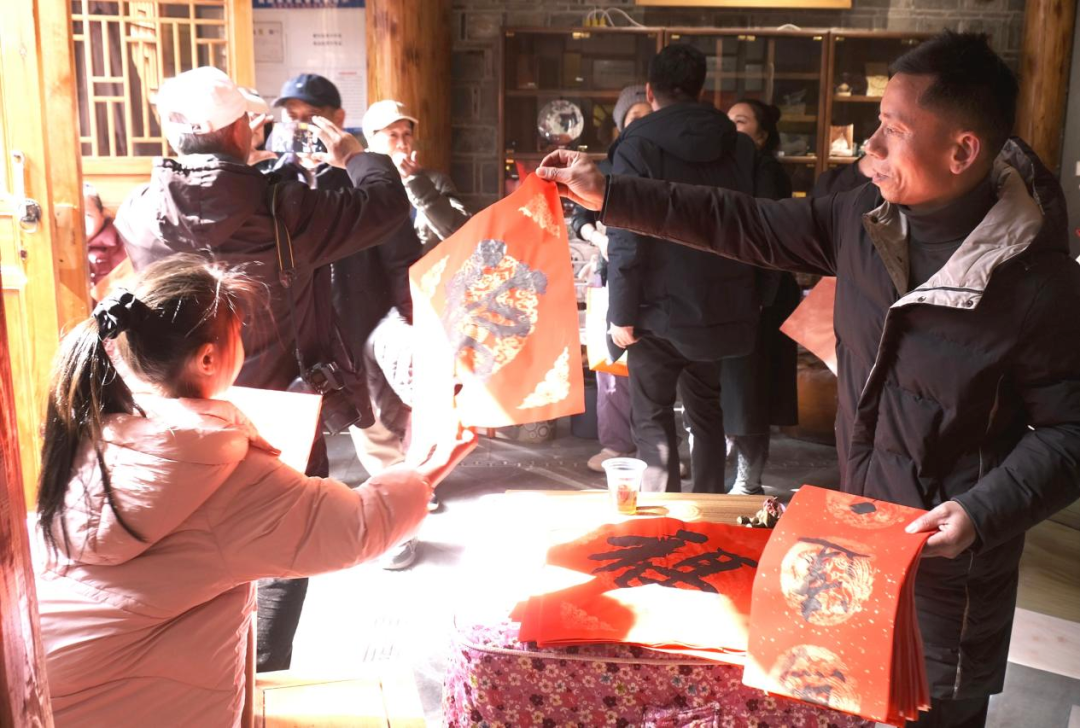 书香迎新春,福联进万家。桃江县书法家走进高桥镇大林村开展送春联活动,现场红纸铺展、墨香四溢。书法家们凝神挥毫、笔走龙蛇,一幅幅吉祥春联跃然纸上。村民们围在桌前翘首以待,挑选心仪的春联,浓浓年味扑面而来。(桃江县纪委监委供 陈明 摄)