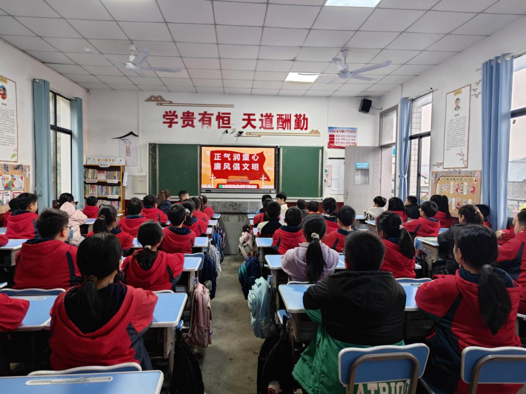 安化县纪委监委联合县教育局大力推进廉洁文化进校园,督促全县各中小学校将廉洁教育融合到校园文化建设、青少年思想道德建设等方面。图为安化县东坪镇黄沙坪完小以“正气润童心 廉风倡文明”主题队课为抓手,结合国旗下讲话、主题班会、廉洁故事分享、书画创作等多元形式,将廉洁文化融入日常教育,让师生在互动中感悟廉洁内涵。(安化县东坪镇黄沙坪完小供 曾胜蓝 摄)