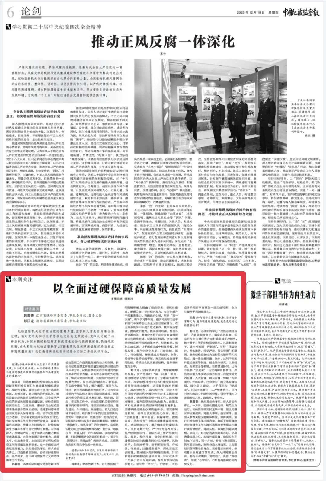 彭江龙:锻造高素质纪检监察铁军是保障新征程纪检监察工作高质量发展的基础性、战略性支撑,其核心在于通过打造政治忠诚、本领过硬、清正廉洁的干部队伍,确保监督执纪执法更加精准有效,以全面从严治党的新成效保障高质量发展。纪检监察队伍因党而生、为党而战,忠诚于党是纪检监察干部最根本的政治品格。绝对忠诚意味着必须同党中央保持高度一致,恪守纪检监察权力边界,切实强化规范用权的政治自觉。当前反腐败斗争形势仍然严峻复杂,腐败存量尚未清除,增量还在持续发生,铲除腐败滋生土壤和条件任务仍然艰巨繁重。斗争越深入、考验越严峻,对干部队伍的能力素质要求就越高。必须全面提升政治能力、政策水平、纪法素养等,主动适应新征程纪检监察工作高质量发展新要求,进一步提高正风肃纪反腐能力。执纪者必先守纪,律人者必先律己。打造高素质队伍,必须坚持更高标准、更严要求,使干部习惯在严之又严的氛围中工作生活。