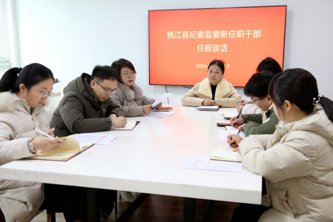 桃江县纪委监委以任前廉政谈话为“开工第一课”,教育引导新竞聘上岗干部强化纪律意识和规矩意识,筑牢拒腐防变思想防线,以优良作风开启新岗位新征程。图为任前谈话现场。(桃江县纪委监委 李丹 摄)