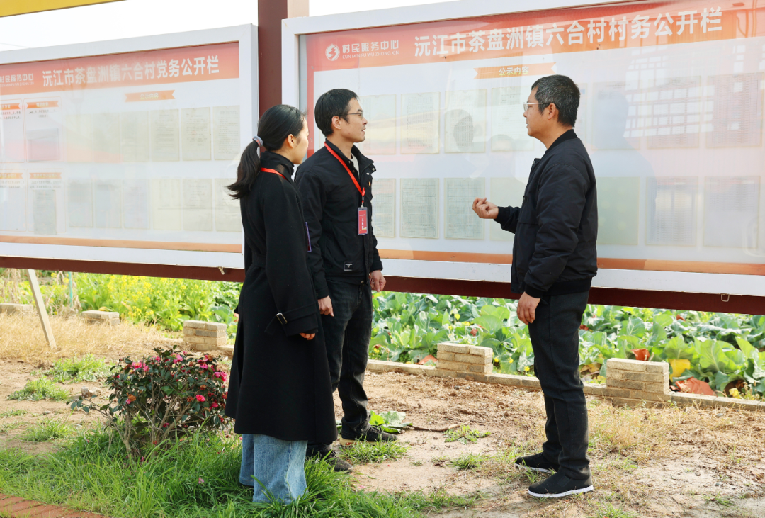 沅江市茶盘洲镇纪委干部在该镇六合村开展监督检查,了解村级事务“四议两公开”制度执行情况。