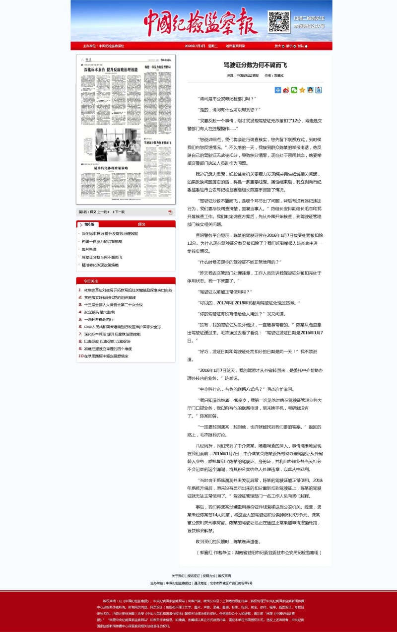 “驾驶证分数不翼而飞,是哪个环节出了问题,背后有没有违纪违法行为,我们要尽快调查清楚,回复当事人。”陈组长安排副组长毛杰和我开展核查工作。我们制定调查方案后,先从外围开始核查,到驾驶证管理部门核实相关问题。