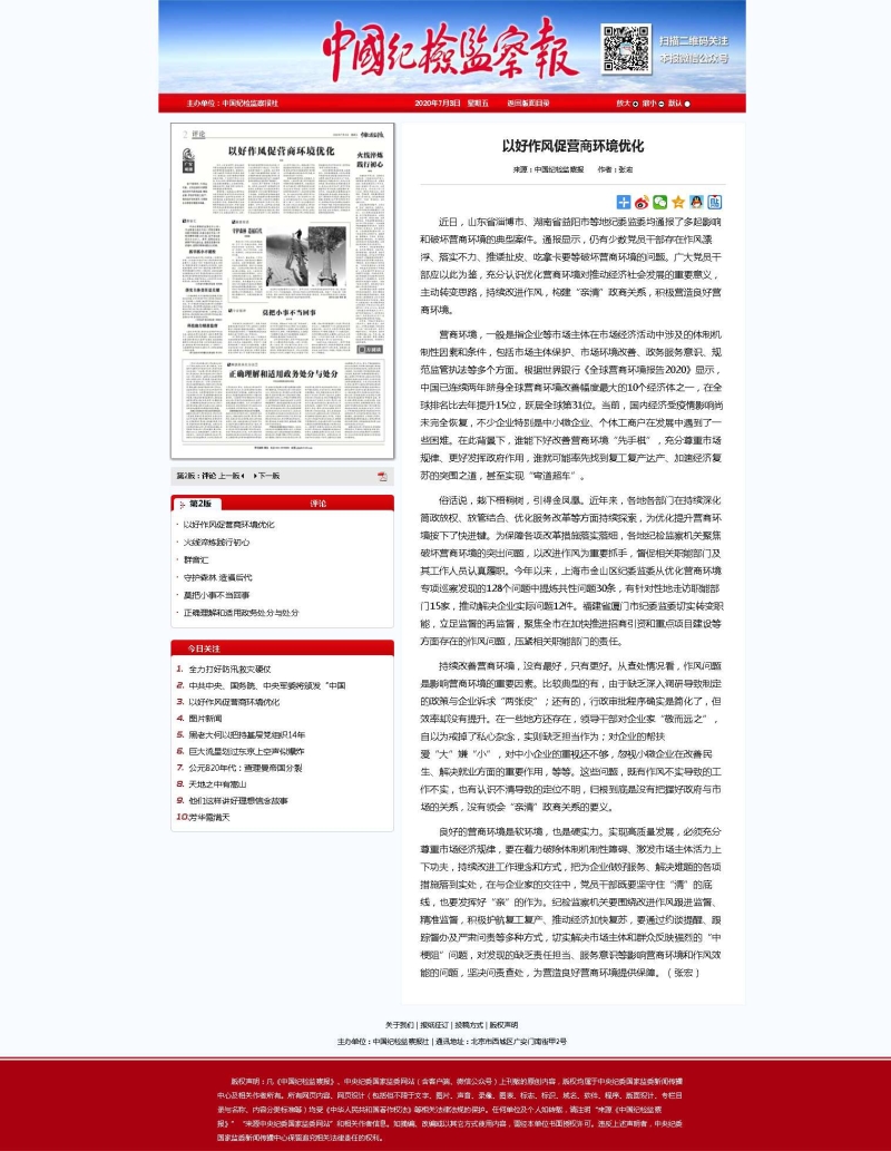 【中国纪检监察报】以好作风促营商环境优化